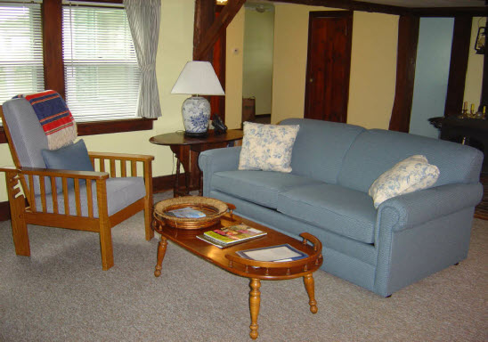 Inside the cottage you’ll find the master bedroom and one-and-a-half baths. The Summer Room, a detached bedroom and bath, is a few steps across a deck. The living room features hand hewn beams from the 1820’s, a Vermont Castings wood stove (as well as forced air heat) and a sofa bed. There’s a covered patio where you can have a barbeque, relax, and enjoy the splendid view of the Hudson Valley. Watch the deer and wild turkey grazing in the meadow. The sunsets are dazzling!